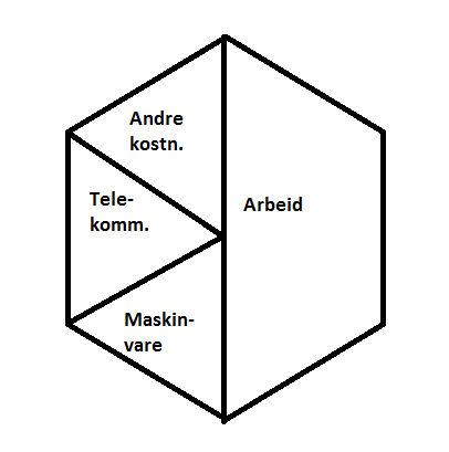 Keagy teikna opp figuren over (dvs. han teikna ein sirkel, men poenget er det same) og forklarte korleis han trur utviklinga vil bli. Figuren representerer dagens kostnadsfordeling med it-drift, i grove trekk. Han meiner det blir eit stort press på arbeidskostnadene og at omfattande automatisering vil redusera denne mykje. Det er berre å sjå på kostnadsbiletet for ServePath og GoGrid for å sjå det.